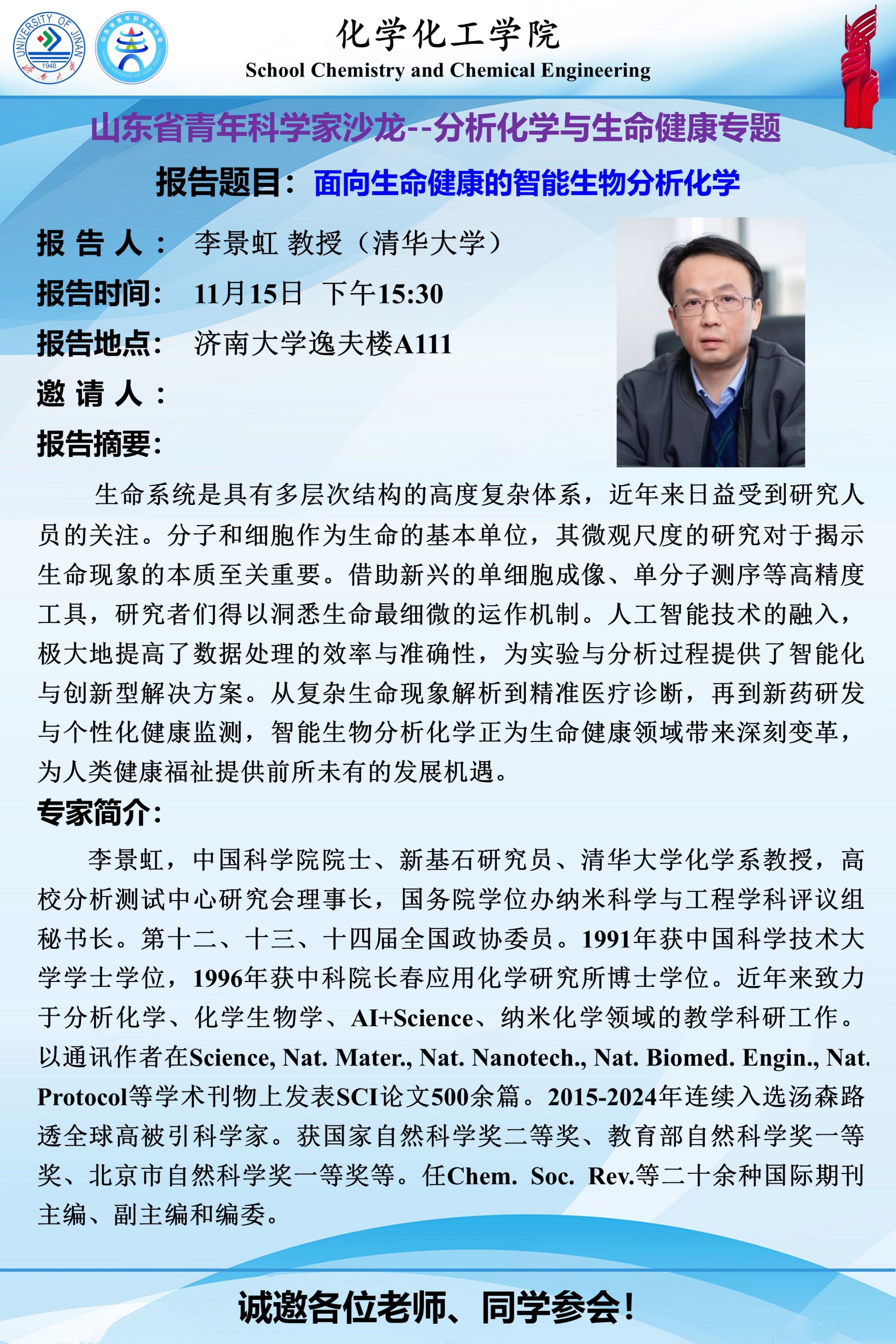 学术报告 | 面向生命健康的智能生物分析化学
