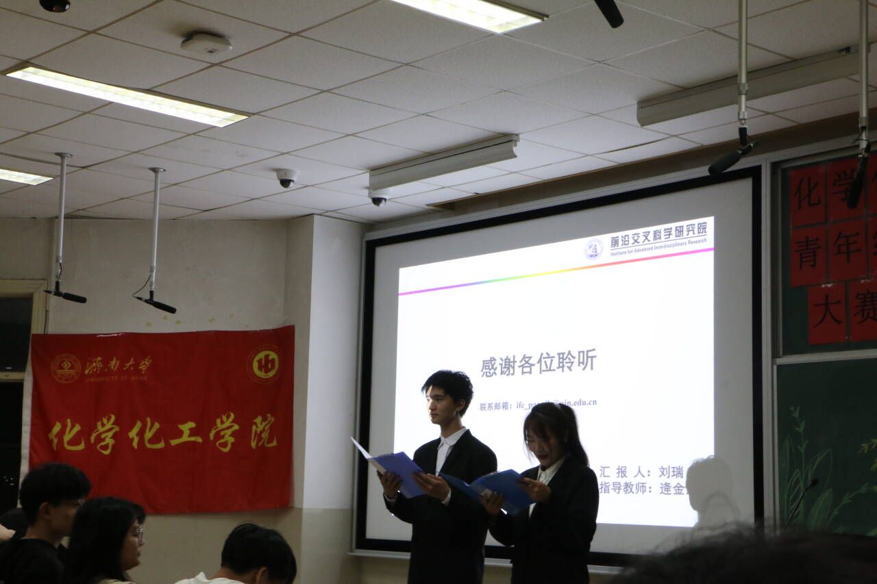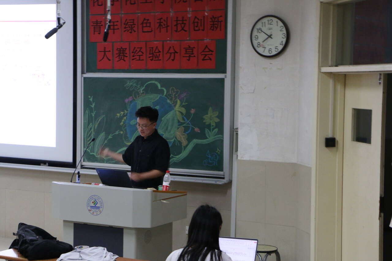 会上,首届青年绿色科技创新大赛国赛金奖团队负责人刘瑞对此次比赛的赛事流程、报名条件、参赛注意事项等进行详细梳理说明,并通过列举具体赛事向大家展示具体细则和关键要点,使同学们可以真正了解不同比赛的侧重点,有针对性的备战科创竞赛,激发参赛热情。随后进行答疑环节,获奖团队成员与同学们进行经验交流。