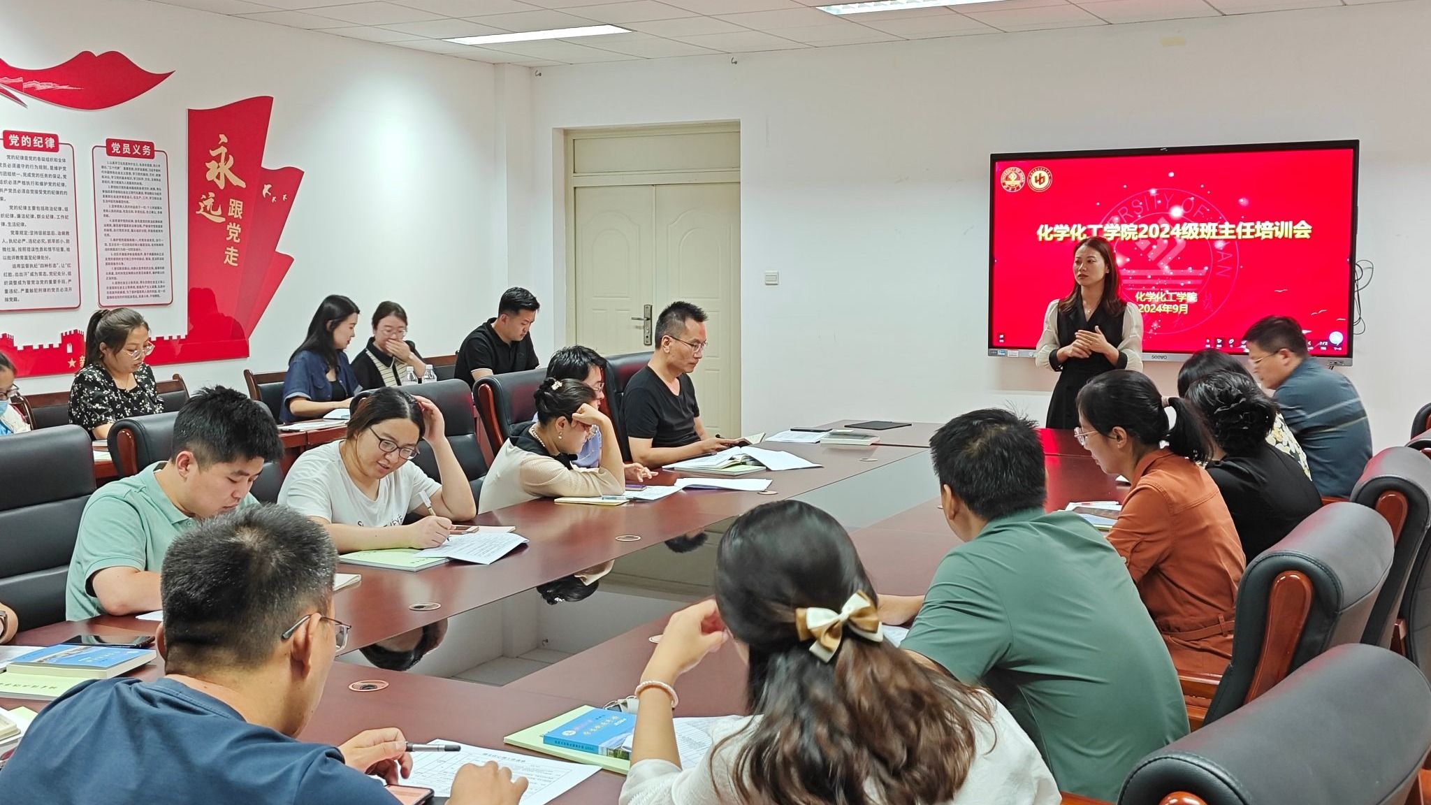 新生辅导员李健慧、贾延森向与会班主任老师细致讲解了《英国上市公司官网365班主任工作条例》和《英国上市公司官网365学生制度手册》并向他们转达了近期工作安排。