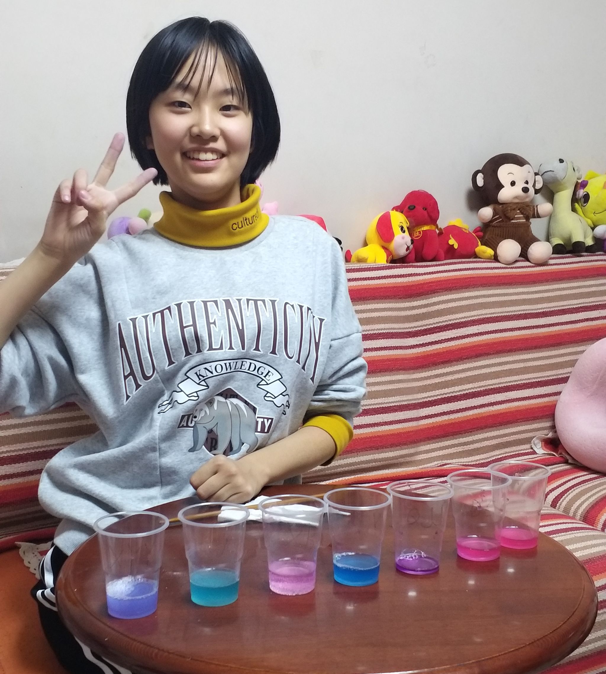 而“家庭实验+实验研学”让学生在熟悉的生活情景和社会实践中感受到了化学的重要性。“家庭实验”和“实践调查”是学生最喜欢的一项作业,因为它是那么的新奇、有趣,它像催化剂一样激起了学生化学研究的热潮。学生在这类“糖衣炮弹”裹藏的生活体验中,推开了化学学习的智慧之门。