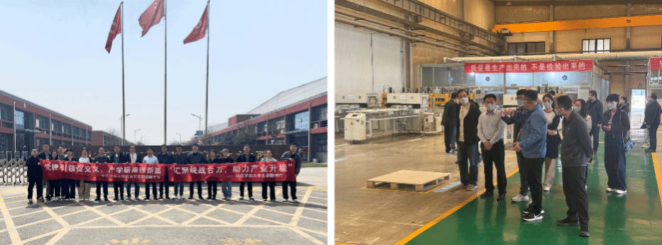 在北玻院(滕州)复合材料有限公司,团队一行实地察看了企业研发中心与智能化生产车间,与企业技术负责人开展座谈交流,详细询问轨道交通复合材料、风电叶片模具等核心产品的研发思路、技术优势及生产流程,深入了解企业在技术创新、产品升级过程中面临的需求与挑战。